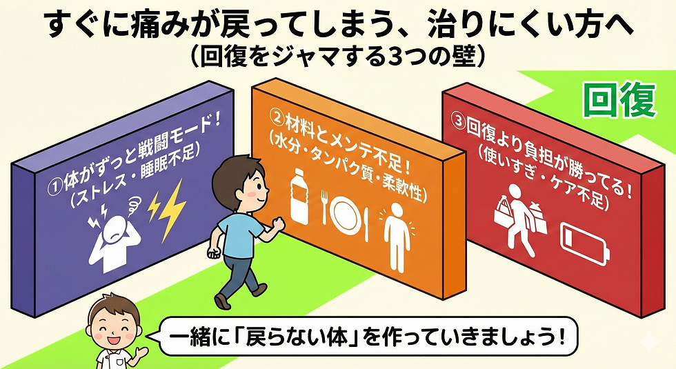 なぜ、長年の首肩こりや腰痛は1回で治らないのか?